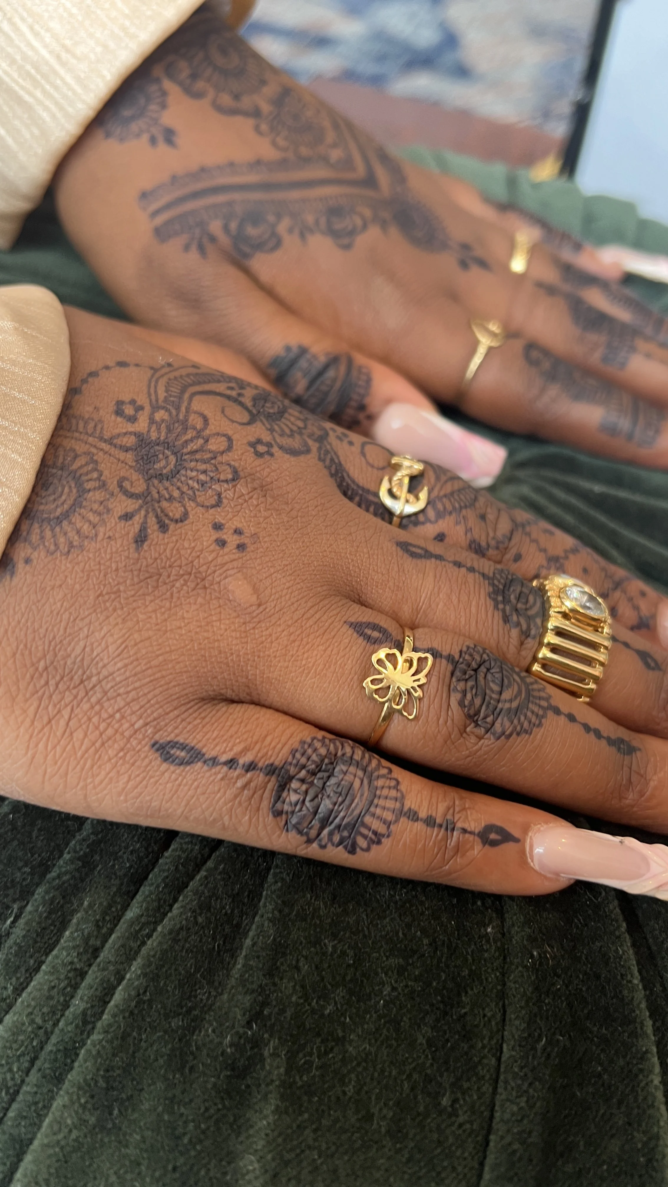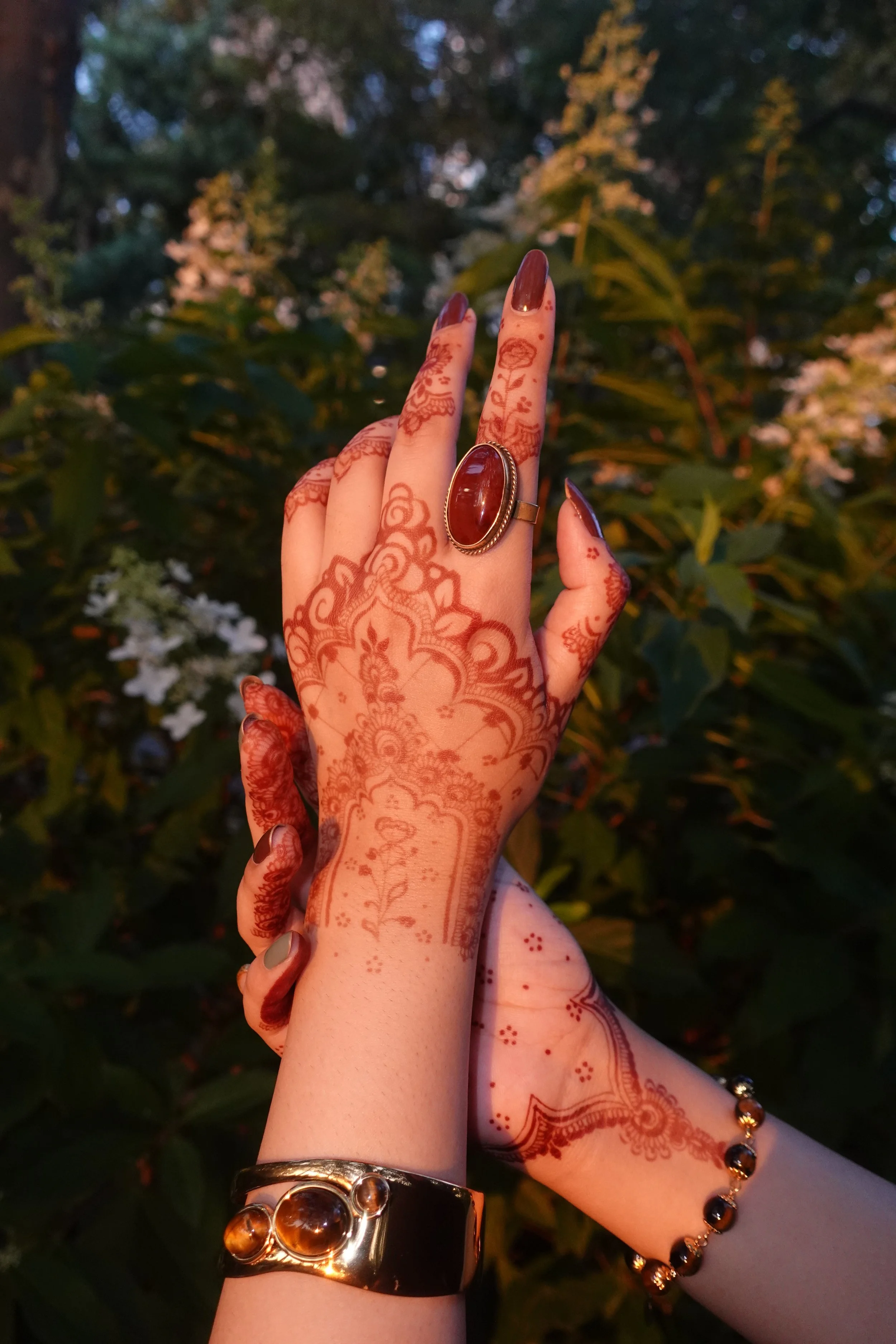Hello! My name is Atiyyah, and I am the hands behind Athaare! I have been doing henna as a hobby and a business for over 10 years (2014). While my craft and creative practice have transformed with time, henna and my love for it have been constant. I see Athaare as an extension of myself and this love for henna, something I imagine my middle school self would be elated to be creating — and of course, sharing with you now! Welcome to my henna garden ❀